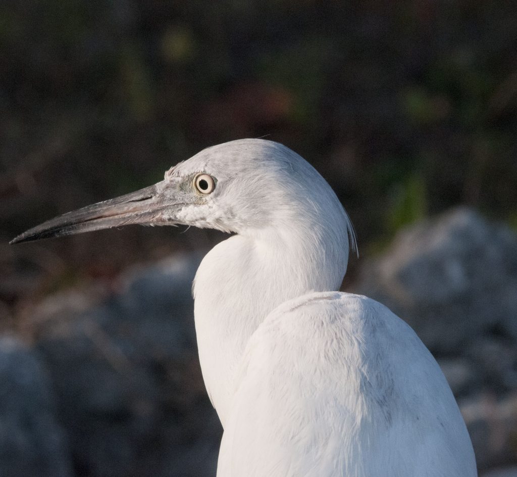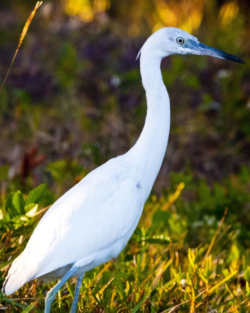 It’s thought to be a feeding advantage. Juvenile Little Blue Herons often feed alongside white egrets. Their white plumage may make them less threatening to prey in shallow water — almost blending in socially.