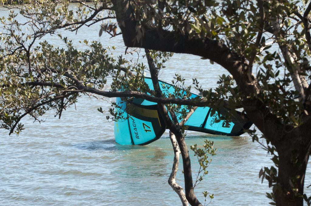 He did not get it up, the lines tangled when the wind flipped it around and around.