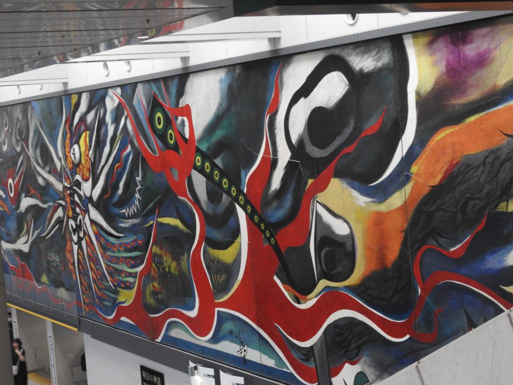 This mural in your photo is “Myth of Tomorrow” (明日の神話, Asu no Shinwa), a large-scale painting by the Japanese artist Tarō Okamoto.