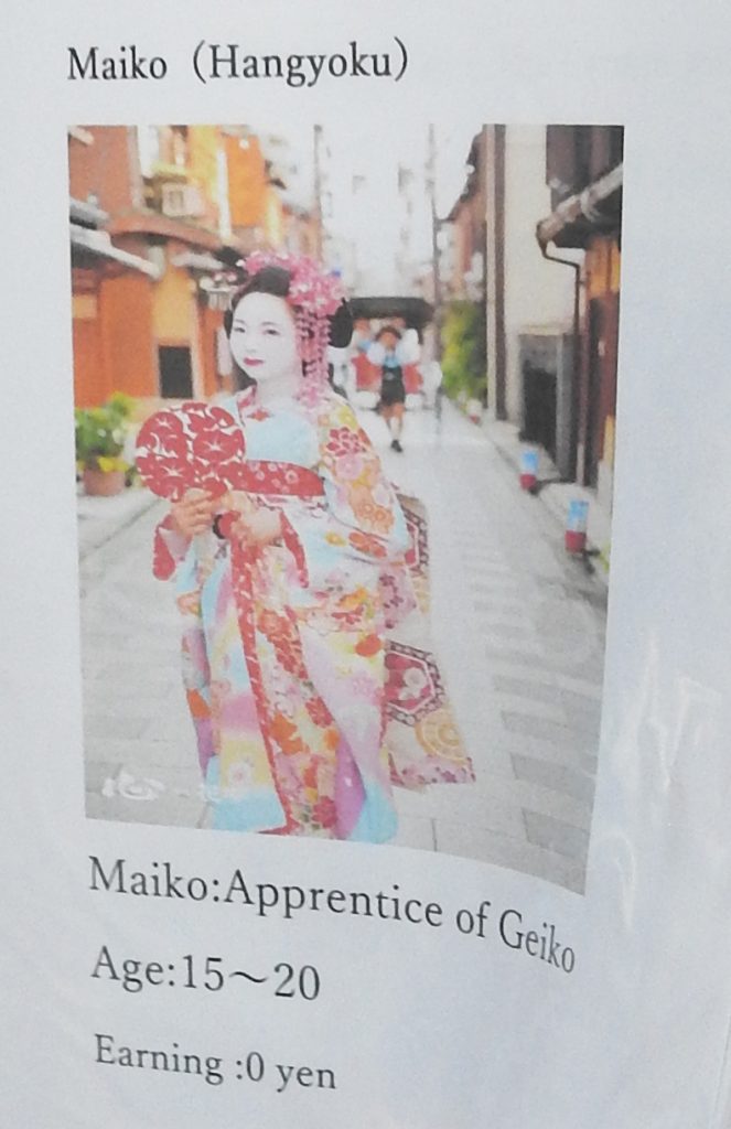 Geisha charge $400 for a 2 hour attendance at a meal. They earn 2m yen ($13,000 per year) to 6m yen ($41,000).