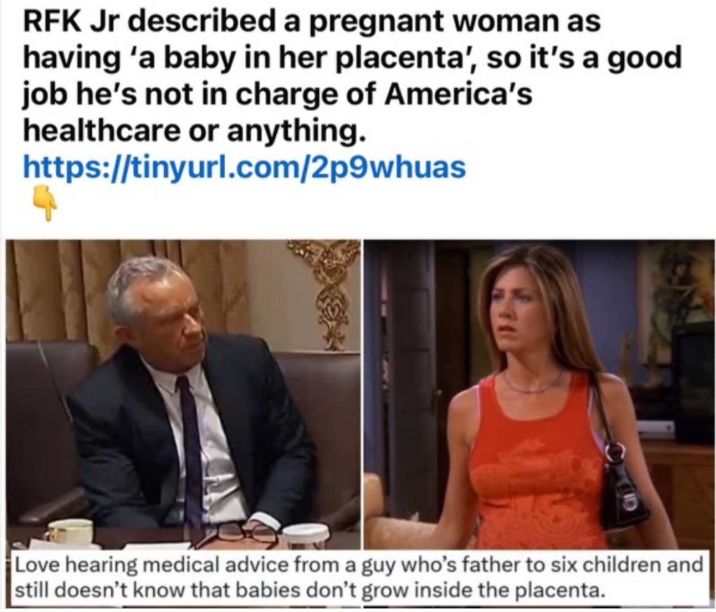 In a meeting with Trump and the staff, Kennedy said: “Somebody showed me a TikTok video of a pregnant woman at 8 months pregnant — she’s an associate professor at the Columbia Medical School — and she is saying ‘F Trump’ and gobbling Tylenol with her baby in her placenta. The level of Trump Derangement Syndrome has now left the political landscape and is now a pathology.”