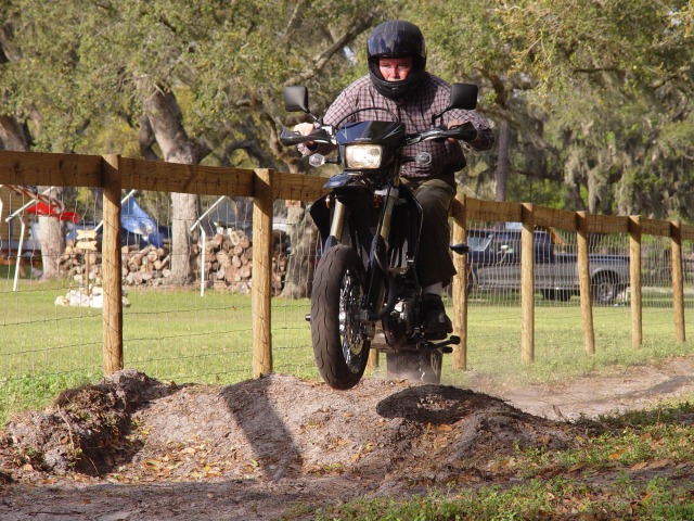 Me taking a jump at Darrell's on Jonathan's Suzuki SMZ 400. |