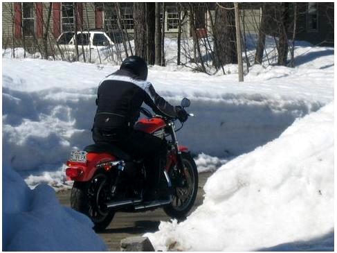 Mike McVetty on his new Harley in Portland Maine, not much different weather, would you say? |