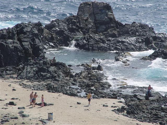 The circular action of the water left this portion intact (see the person on the point at the end of the trail?). |