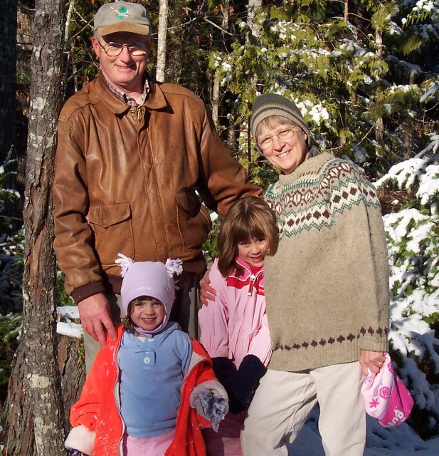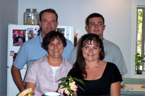 Ann, her husband Mike, and son-in-law-to-be Richard (back) all from England, with Courtney, Candy and Dan |