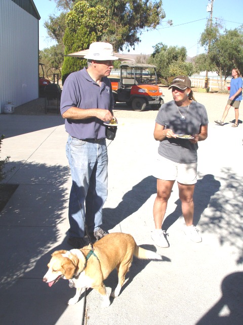 Don, Jean and their dog having a snack at the Paicines ranch. |