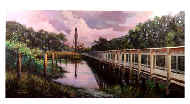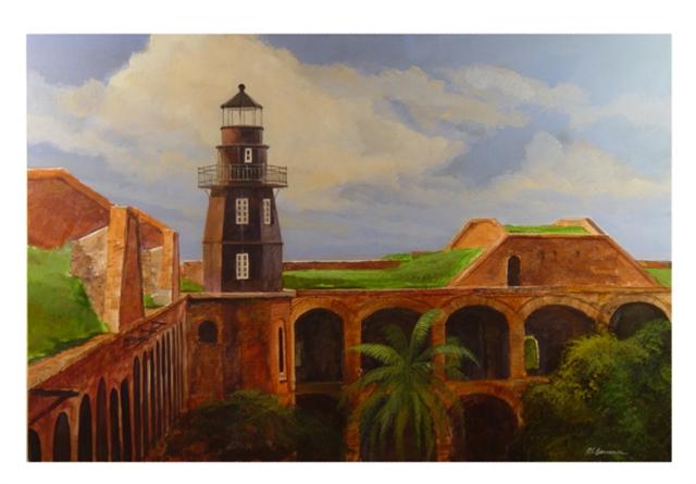Original of the painting Roger Bansemer did of a photograph I took of the lighthouse in the Dry Tortugas |