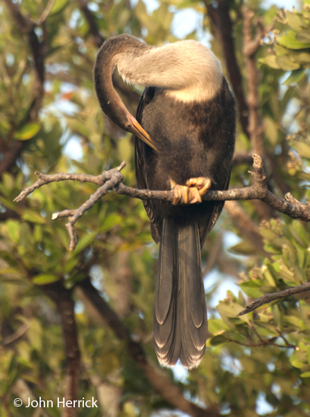 anhinga just resting, look at those feet! They are like paddles, soft a rubbery
