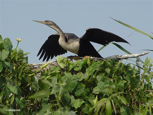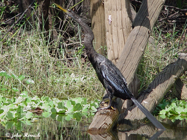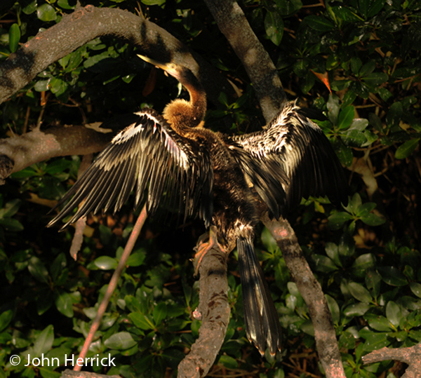 Other birds like the duck float, the anhinga would not be able to stay under the water with their feathers!